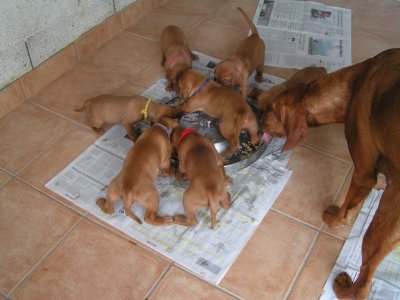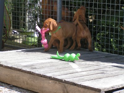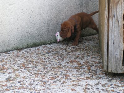 bien toujours à la bouillie de croquettes, on joue dehors, on