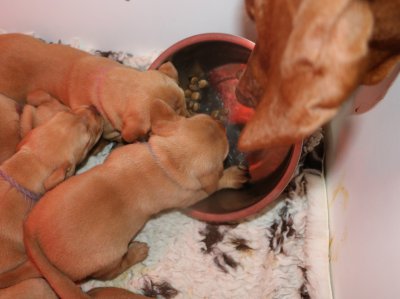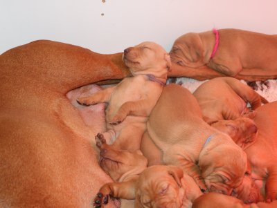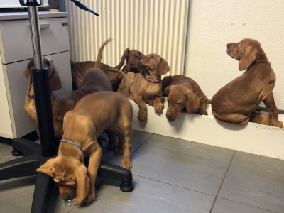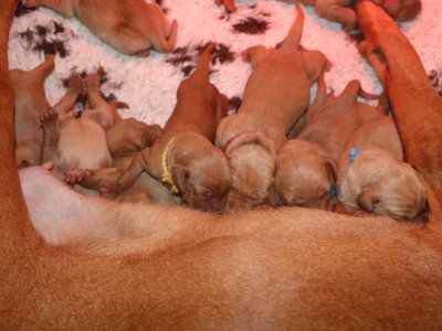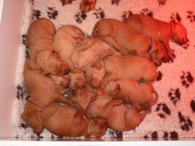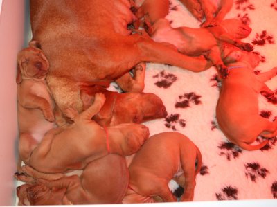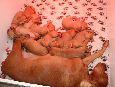 On est arrivé dans la nuit de samedi. Tout s'est bien passé, 10 chiots en 7h15